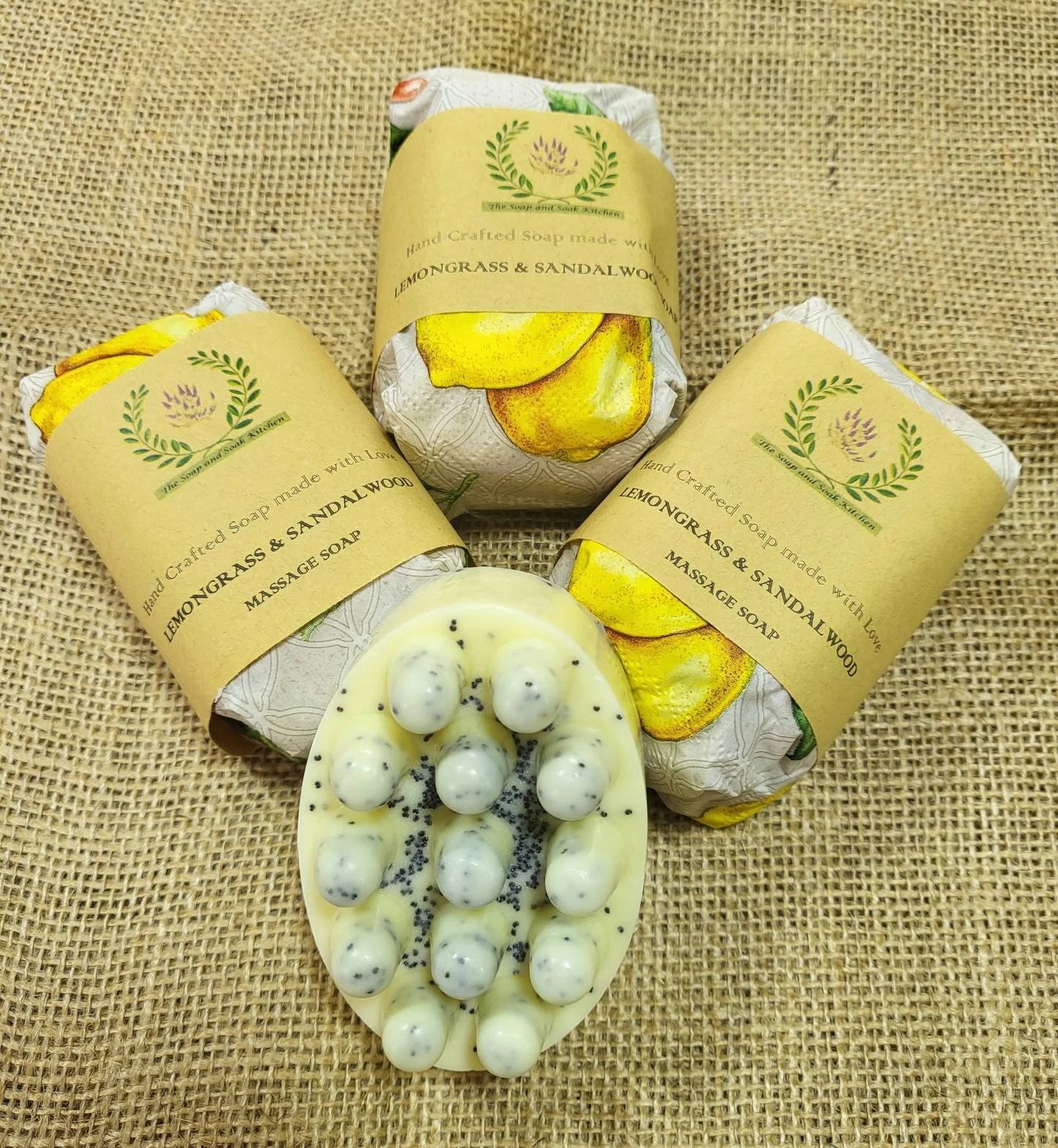 One of our most popular soaps. Our Massage Bar aids clarity. The bar is moulded into a perfect shape for massage helping with circulation issues including the appearance of cellulite. We have added poppyseeds which are great for gentle exfoliation. Then blended it with zesty Lemongrass and earthy Sandalwood essential oils a perfect combination.